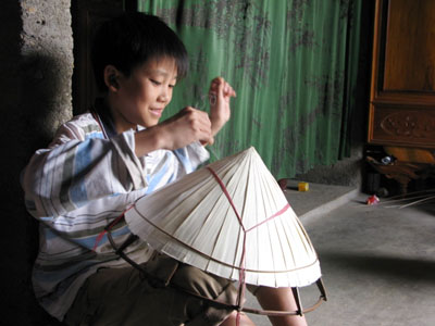 | Chăm chỉ làm nón ở xã Quảng Trạch, Quảng Hải, Quảng Bình |