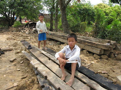 | Phụ giúp bố mẹ dựng lại nhà sau trận bão ở Lục Ngạn, Bắc Giang |