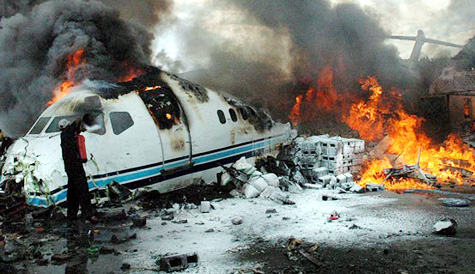| Vụ tai nạn máy bay kinh hoàng xảy ra với chiếc máy bay Airbus A330 của hãng hàng không Afriqiyah (Libya) bay từ Johannesburg đến Tripoli sáng hôm qua 12/5 |