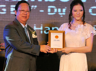 Bà Lý Nhã Kỳ nhận giấy phép hoạt động Quỹ từ thiện Sheen Hok tại VN từ ông Vũ Xuân Hồng – Chủ tịch Liên hiệp các tổ chức hữu nghị VN.