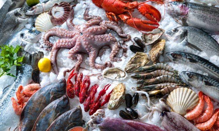 Hải sản là một nguồn dinh dưỡng tuyệt vời cho estrogen và progesterone. Các loại hải sản giàu omega-3, chất béo có lợi cho sự sản xuất hormone. Các loại hải sản như cá hồi, cá thu, tôm, cua, sò điệp,… đều chứa nhiều chất dinh dưỡng này.